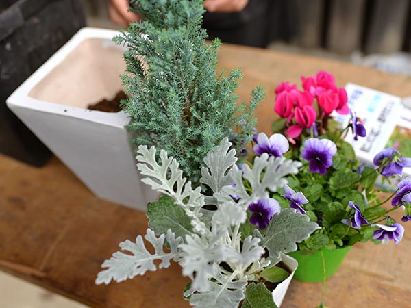 いま、はやりの『寄せ植え』。